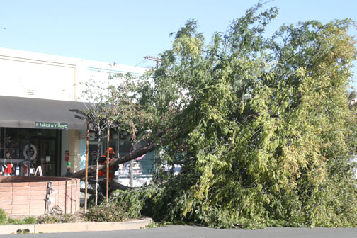 “The way the tree fell (did) not [do] much to impede traffic,” said Dale Dawson, Montrose Shopping Park Assn. business administrator. “But it is a sad situation because it was a big beautiful tree.”