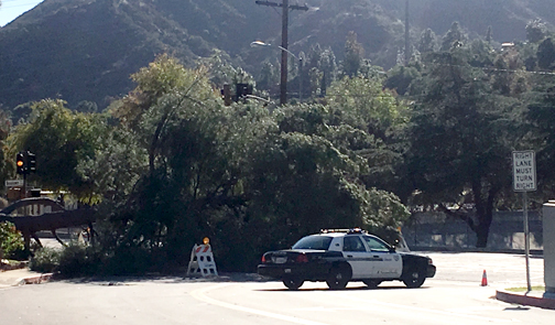 In La Cañada, one woman’s carport and vehicles were damaged when a tree fell on it. At Roselawn and La Crescenta Avenue Glendale police were on scene to oversee traffic after a large tree fell into traffic lanes. On Community Avenue near Cloud Avenue a transformer was reportedly arcing; Southern California Edison responded. Vehicular and foot traffic had been rerouted, affecting Crescenta Valley High School and La Crescenta Elementary.