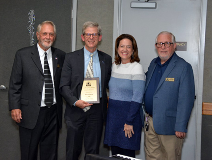 Accepting the Beautification Award for Deukmejian Wilderness Park was Stuart Byles, center, flanked by Chamber Vice President Mike Baldwin (left) and CV Chamber President Mike Riley.