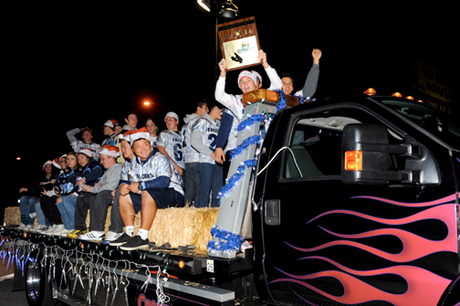 The Falcons won the CIF championship on Friday and were cheered once again as they made their way down Honolulu Avenue.
