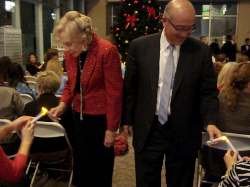 Dr. Lew and Dr. Marguerite Marsh led the lighting of the candles tribute. Members of the audience were given electronic candles prior to the event, which Lew and Marsh “lit” as they walked down the aisle, touching their candles to those seated.