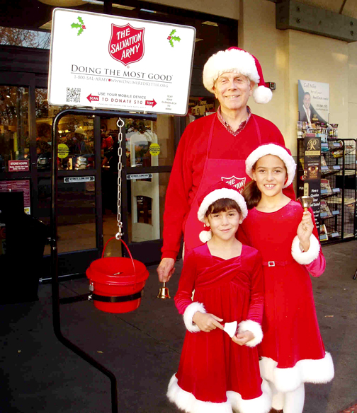 Local residents, like Dave Hemstreet from La Cañada and his granddaughters Martina and Fiona, are needed to help ring the bell for the Salvation Army Red Kettle campaign. The annual campaign is a leading fundraiser for the organization.