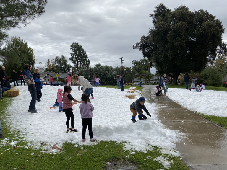 The Los Angeles County Dept. of Parks and Recreation hosted a Snow Day and brought in ice that they shredded into snow for local families to come and enjoy. The event was sponsored by LA County Supervisor Kathryn Barger.
