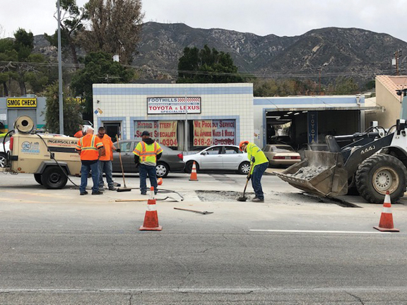 On Dec. 14, Glendale public works crews were taking what was left of the Welcome to Glendale sign off Foothill Boulevard near Lowell Avenue and repairing the cement.