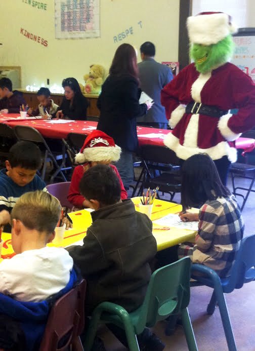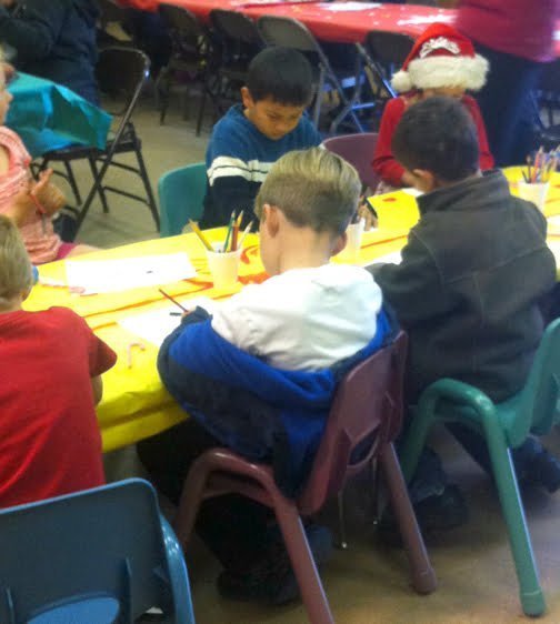 One volunteer came out to welcome guests and explain how the morning would unfold. The children could take part in a coloring contest, there would be a raffle for the parents, and every child would get a gift from Santa.