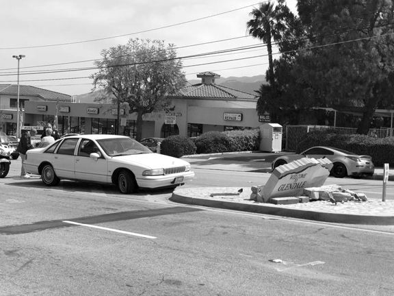 Glendale police responded to a vehicle that struck the Welcome to Glendale sign in the center lane of Foothill Boulevard just east of Lowell Avenue. When GPD arrived they found that a Sunland man, 78, had been traveling in the number one lane when he entered the center median and struck the sign.
