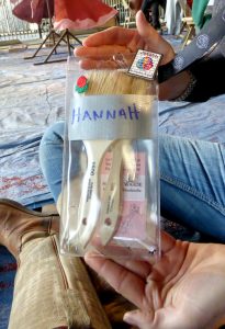 “I love that the entire community gets involved. Look at how many families are here? Plus, it’s so cool to get people working with their hands,” Warde said. She demonstrated the difference between cranberry seeds and the lighter-colored sweet rice and yeast seed mixture being glued onto giant flower petals.