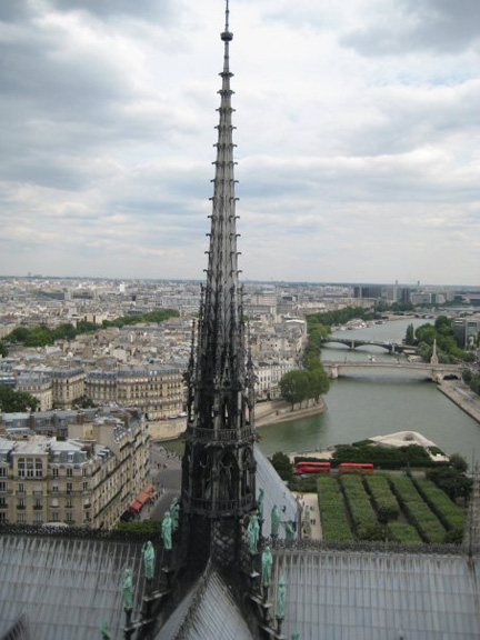 The Cathedral caught fire from unknown causes (as of press time), though supposedly from some renovation activity, and burned for several hours. The roof caved in and the wooden spire collapsed after burning for just 13 minutes. Fears continue that even the stone may crumble under the weight of the bell that was supported by a wooden frame in danger of burning. And yes, that’s Quasimodo’s bell.