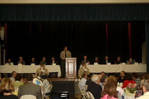 The breakfast was also a chance to focus on foothills youth. There were several youth representatives from the Church of Jesus Christ of Latter-day Saints as well as a few from the Prom Plus Club at CVHS. Though Tuesday was a late start for students at the high school, it appeared that most preferred to stay in bed rather than attend the early morning breakfast. However, the CVHS Charismatics were on hand to perform, as were the Crescenta Valley Sheriff’s Explorer’s Color Guard.