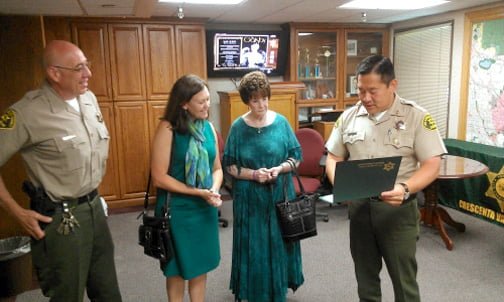 On June 18 at 10 a.m., Capt. Bill Song of the Crescenta Valley Sheriff’s Station presented a certificate of appreciation to Pastor Paige Eaves for her time and commitment to the community and the Crescenta Valley Sheriff’s Station.