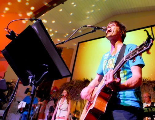 For one night, the church was transformed from worship space to a tropical locale, complete with tiki torches, surfboards and grass huts supported by bamboo poles. Now in its second year, Summer Nights is one of two yearly secular music shows presented at the church, which included covers of songs from artists such as Adele, Jason Mraz, Peter Gabriel and Bruce Springsteen. The show utilized the talents of mostly professional singers and musicians from the CV Church band and “Strings & Beans,” the church’s coffeehouse-style showcase presented every month.