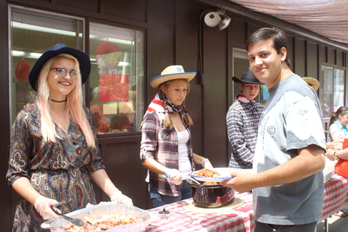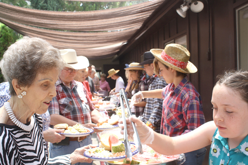 After the service there was an old fashioned barbecue with pulled pork, pulled chicken, corn-on-the cob and, of course, cowboy beans. Members of Prom Plus Club danced and also served the barbecue meals.