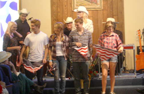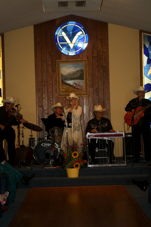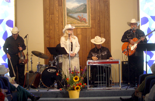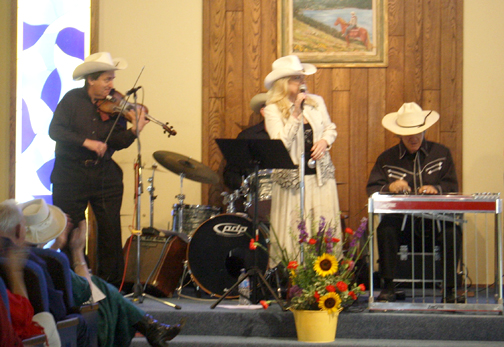 Karen Mitchell and the CC Wranglers entertained the congregation with cowboy music singing titles like, “Nobody Kisses Their Horse Anymore.”