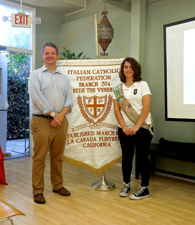 Isabella Portantino was the guest speaker at a recent meeting of the Italian Catholic Federation Branch 374 at St. Bede the Venerable Church in La Cañada Flintridge.