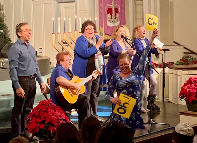 From left are Joe DeCenzo, Vickie Sampson, Rabbi Janet Bieber, Anya Boyer, Lucy Levinsohn Berman and Franny McCartney.