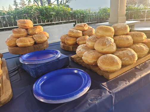 On late afternoon Monday, Memorial Park in La Cañada was the site of a festival of lights. The Chabad of La Crescenta invited the entire Crescenta Valley community to share and learn about the Jewish holiday, Hanukkah. Volunteers offered face painting and the chance for guests to decorate their own dessert, plus be entertained by dancing dreidels and filled by tables piled high with delicious latkes (potato pancakes) and sufganyot (jelly doughnuts).