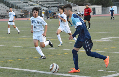 25-yard left foot strike in the dying minutes sank the hopes of the Crescenta Valley High School boys’ varsity soccer team for a win in the opening conference game against host John Muir HS Pasadena, which ended in a 1-1 draw.