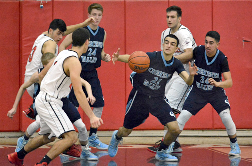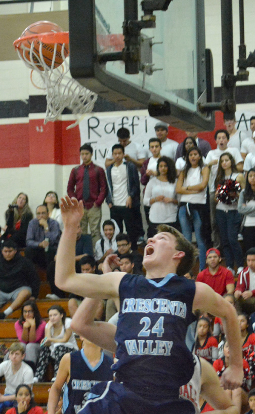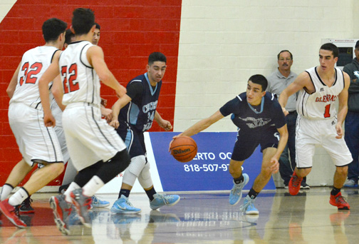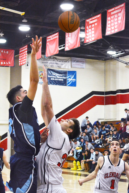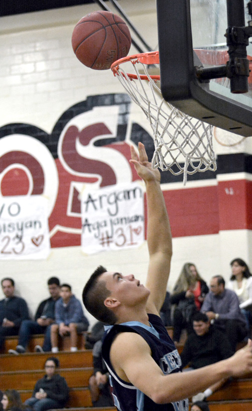 CV led 38-31 at the half. Glendale’s Raffi Jivalgian scored eight of his 20 points in the third quarter, but Ovanessian matched him with eight of his own, including two 3-pointers. Falcons’ guard Kyle Currie (nine points) got into foul trouble, and Glendale backed off of point guard Tadeh Taverdian, who has been playing that role in Krikorian’s absence. He missed several midrange shots when the Nitros practically dared him to shoot, but in the fourth he and Ovanessian each hit big 3-pointers to put the game away.