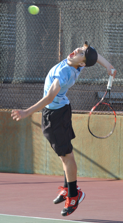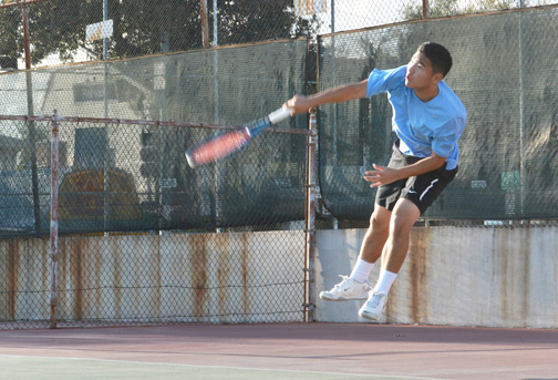 CVHS extended their winning streak to three wins on the trot when they easily accounted for their cross-town rival and host Glendale HS Dynamiters, 15-3 on Tuesday. Senior Meserkhani had little trouble in winning his singles matches 6-1, 6-0 and was backed up by senior and number two player Albert Chtchyan, who gave his team momentum by sweeping the Dynamiters singles team, 6-4, 6-0, 6-1 and number three player Jonathan Frink rounded out a smooth singles performance by the Falcons, with an impressive display in his 6-2, 6-0 victories.