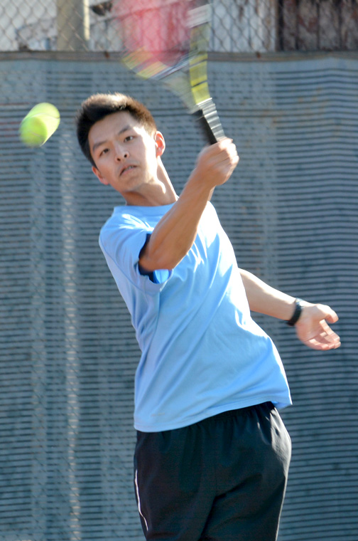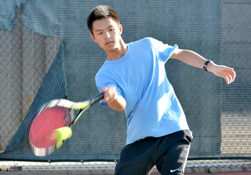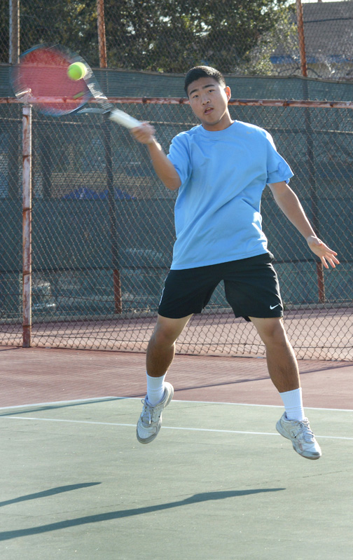 Led by number one singles player Arin Meserkhani and the undefeated doubles pair of Charlie Kim and Kevin Rowe, the Crescenta Valley High School varsity boys’ tennis team grabbed bragging rights over their Burbank counterparts by winning 13-5 against both Burroughs HS and Burbank HS in the first two league matches of the season last week.