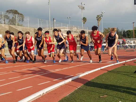 Preparing for their first Pacific League track and field meet, the Falcon boys faced numerous challenges due to the extensive amount of rain that hammered Southern California. Workouts leading up to the first meet would normally have included runners and field event participants getting acquainted with their events through practice meets to alert of any challenges in each event. Weather prevented this.