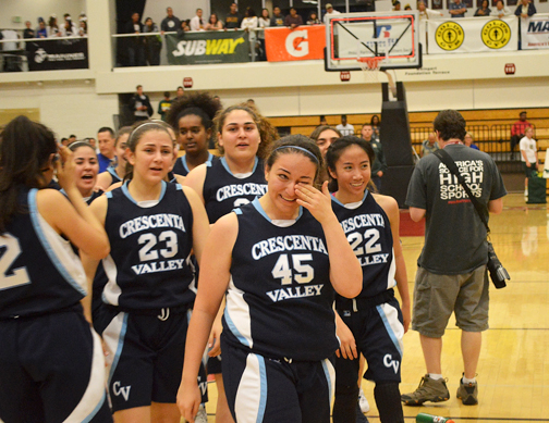 Both sidelines shed tears, but for very different reasons. The CV varsity girls’ basketball team wore their new CIF champion shirts to pose with their new plaque under the scoreboard that read 37-36. Afterward, Shinn reminisced about the moment winning CIF became the ultimate goal.