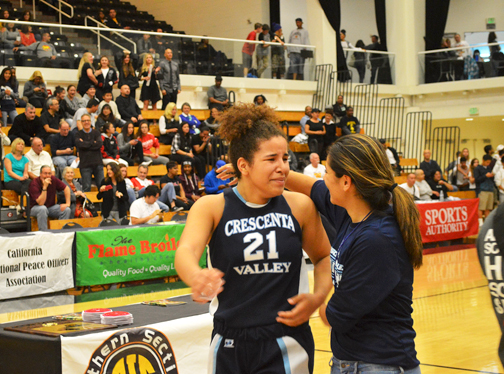 History was made on Saturday evening when the Crescenta Valley varsity girls’ basketball team won the CIF Division 1A championship game against the Mira Costa Mustangs. After four intense quarters of unforgiving combat the Lady Falcons edged out the Mustangs to win the game 37-36 to become the first girls’ basketball team in CV history to bring home a CIF victory.
