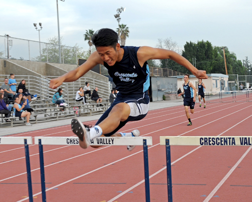 Top CV distance runners, sophomore Colin FitzGerald and senior Philip Thomas, did not take the lead in their races. FitzGerald took second in the 1600 (4:38.2) while Thomas placed second in the 3200 (9:44.4). Senior Kyle Dickinson looked strong winning the 800m (2:02.5). Senior Kenny Kang took a dual win in the 110HH (15.4) and in the 300 intermediate hurdles (40.3).