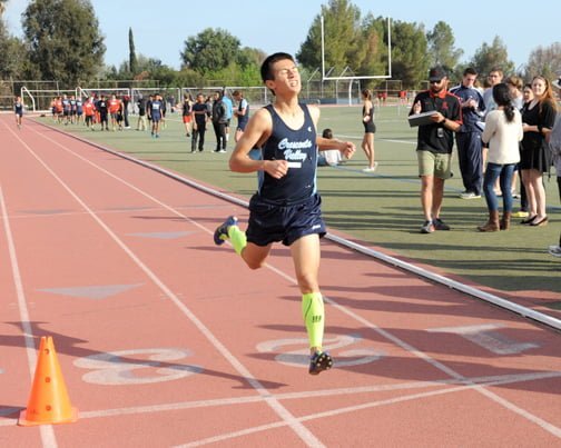 Falcon Christ Ordookhanian took second in the 400m (53.0) behind Glendale’s Torres (51.10). Ordookhanian also ran the 200m (23.34), taking the win over Dynamiter Alanda. Glendale’s Yves Ramirez won the high jump (5-6) and Falcon Juho Kim took second (5-2). The pole vault was won by Glendale’s Michael Williams (12-0). CV freshman Dashel Dupuy had an impressive jump placing second with the same height while teammate Logan Rodger placed third (11- 6). CV also captured all three positions in the long jump and the triple jump: Chris Cobrera took the win (19-6), followed by Matt Purcell (18’) and Josh Ayo (17-7). Triple jump winners were Ayo (39-5), Andrew Hart (37-3) and Cobrera (37-0). Falcon Brandon Rees’ triple jump was 118-1 and teammate Jeremiah DeKruyf (105-4) placed second.