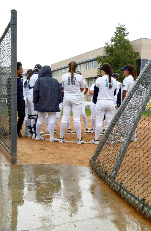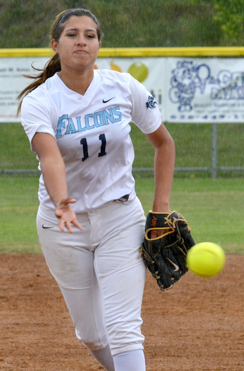 Though there was a tease of a rainout during the game, the weather took a turn for the worse between the sixth and seventh innings. A drizzle turned to rain, and a sudden ending seemed imminent. But the teams were able to get through the first half of the last inning quickly when senior Hailey Cookson came in and threw a scoreless inning, giving the Falcons one last chance for a comeback, still down 8-4. Senior Melanie Abzun worked a full count, eventually hitting a line drive over the right field fence for a lead-off home run.