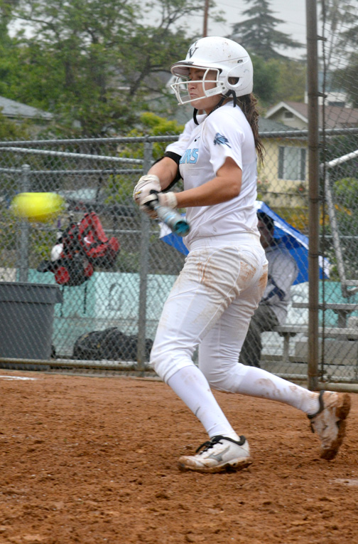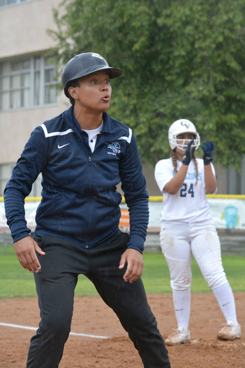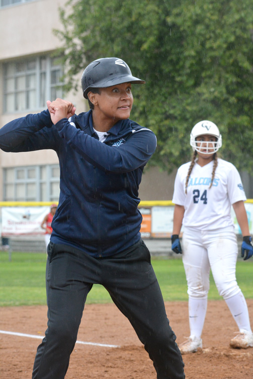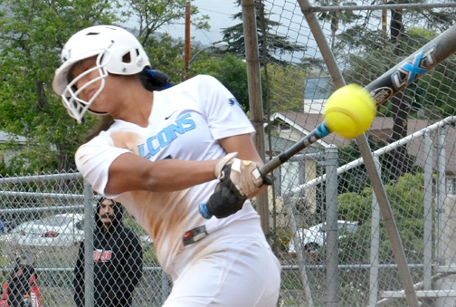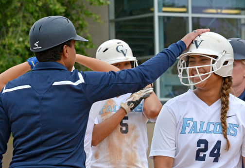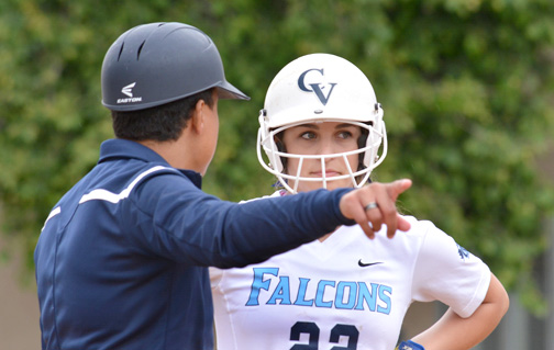 Senior Adela Alatraca got the call to pitch for the Falcons, coming off back-to-back shutouts and a near-perfect game in the first week of Pacific League play last week. She came out stellar, not allowing a run until the fourth inning when Burroughs sophomore Destiny Velasquez hit a no-doubt solo home run, scoring the first run against Alatraca this year. The score was 1-0 Burroughs going into CV’s half when the mellow squad was brought to life when junior Sydnee Wells hit a hard line drive to right-center field for a double, and was brought in shortly after on a base hit by Alatraca to even the score at one as the fourth inning ended.