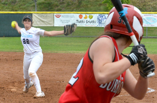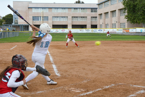 The Crescenta Valley High School varsity softball team dropped its first Pacific League game in an 8-6 loss to Burroughs High School on Tuesday. The Lady Falcons fought hard throughout the entire game, but struggled at the plate unable to string together multiple hits in a single inning while Burroughs prospered.