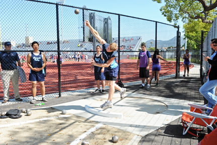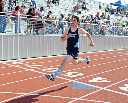 Falcon Parker Averill had a triple win in the sprint 400m dash (53:31), the shot put (36-11½) and discus (110-6). Alex Damia had a close second to Averill in the 400m (53:37) and Adam Akopyan placed third (55:19).