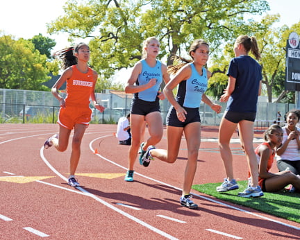 Although the meet is scored separately like a dual meet, the athletes race together at the same time in all the events. CV boys scored 101 to Burroughs 35, and 124 to Hoover’s 11.