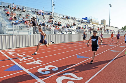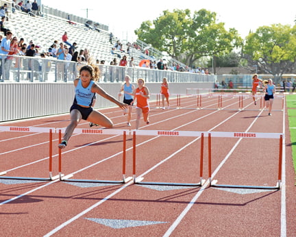 The Burroughs Indians hosted its first track and field tri meet against the Falcons and the Tornados at its new memorial stadium on April 5.