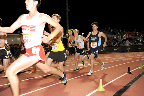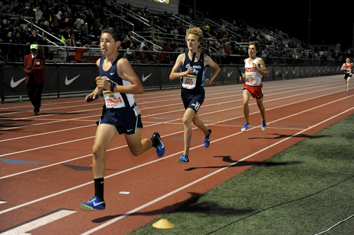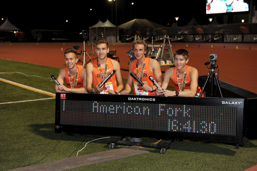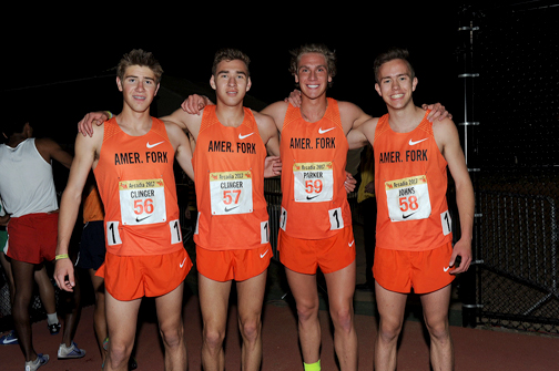 It was during the Friday night program that crowds witnessed the national record-breaking time of 16:41.30 by the team from Utah, American Fork, composed of McKay Johns, Casey Clinger, Patrick Parker and Carson Clinger in the men’s 4×1600. Shattering the old time set by the Great Oak team, the American Fork team shaved 11 seconds off (16:52.95); the splits were 4:26 (first runner) followed by 4:08, 4:05 and an anchor leg of 4:02 that wowed the crowd.