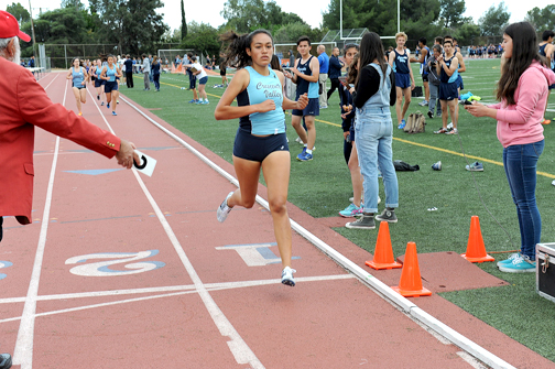 The Falcons started with a no contest win in the 400m relay (50.78). Both Naila Ortiz and Claire Schlueter produced strong dual wins in their events. Ortiz won both the 800m (2:27.53) and the 1600m (5:35.63). Schlueter won the long jump 17-12 and the triple jump 34-2 as well as taking second place in a close finish in the 100m running 12.32 against Burbank’s sprinter Haleigh Cusumano. Bulldog Cusumano produced the only triple win for the day for Burbank in the 100m (12.29), 110H (14.6) and the high jump (5-0).