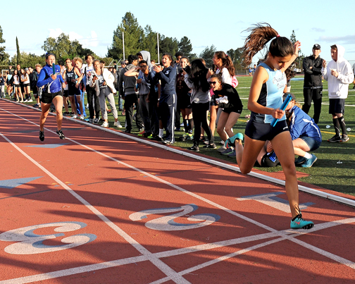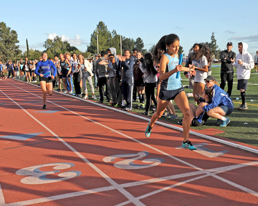 Coming into the Pacific League meet 5-0, the Falcons worked to get every point when they hosted the Bulldogs. For the varsity girls, a winning outcome rested upon the 4×400 relay, the last event of the day.