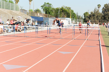 That strength was apparent with a personal dual win in the 200m (25.3) and the 400m dash (58.9). Carrillo also anchored the 4×100 relay, which CV won due to Arcadia stepping out of their zone for the baton exchange. Falcons teammate Claudia Sepulveda also put some points on the board, winning both the 100 hurdles (12.7) and 300H (46.7). CV’s Emmie Walker had a personal best high jump (5-2) winning with Emily Beglarian taking second (5-0).