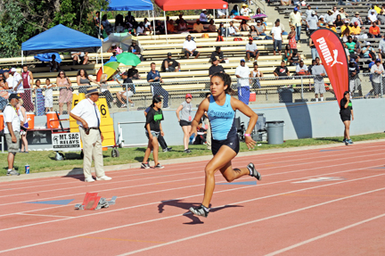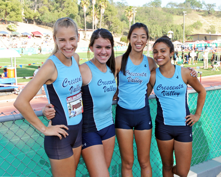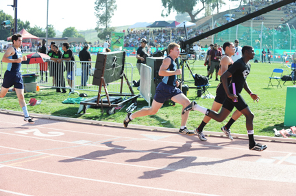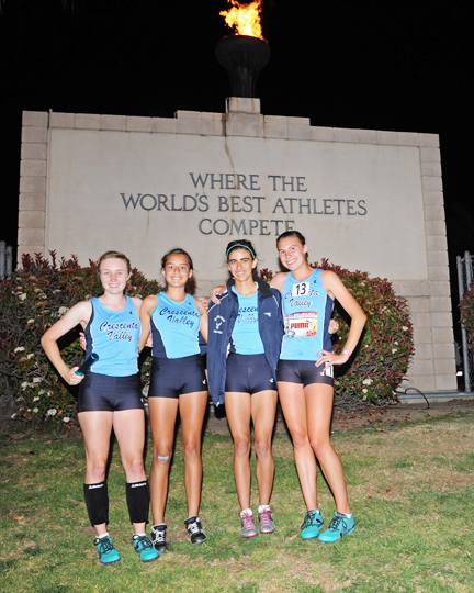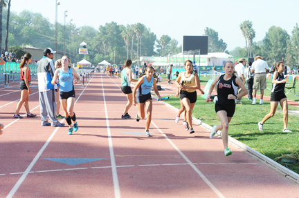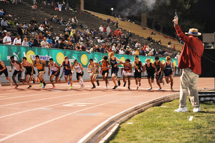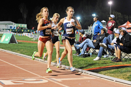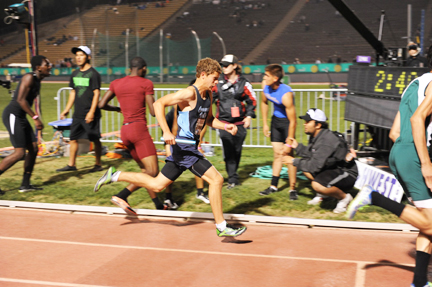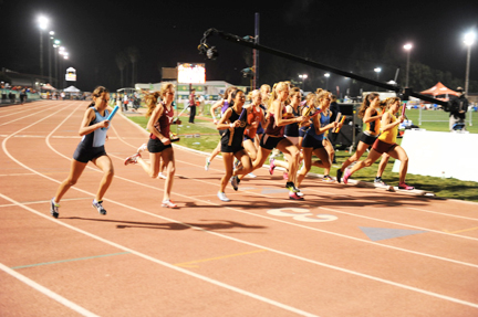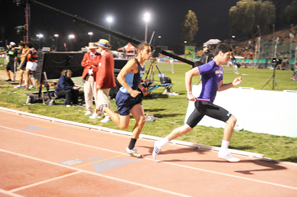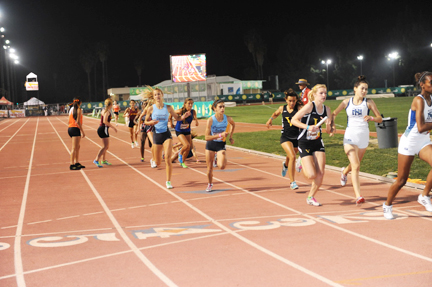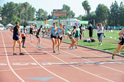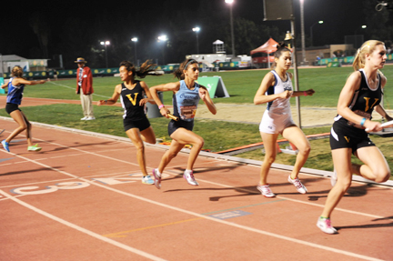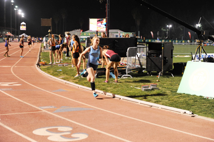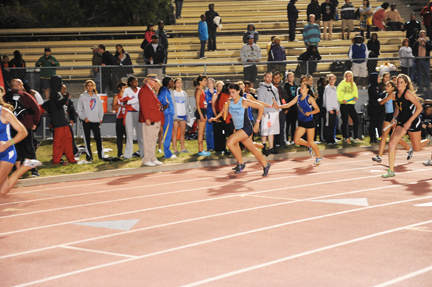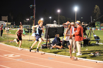 CV Coach Mark Evans had the opportunity to see two former Falcon athletes run the 10K (10,000m 25 laps) at the relays. CVHS graduate Nathan Sellers, who now attends Adams State College in Colorado, placed both in the state CIF cross country and track mile and two-mile races while attending Crescenta Valley High School. Rachel Lange also placed in state CIF cross-country and was a CIF finalist in track while at CV and is attending Brigham Young University.