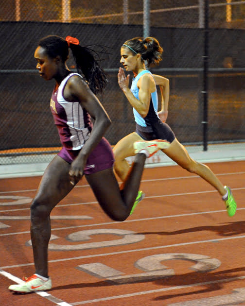 three of her events, the 1600 (5:36.91), 800m (233.45) and 3200m (11:48.05) and Kyle Dickerson won the 800m (2:05.25).