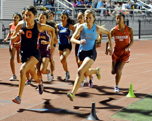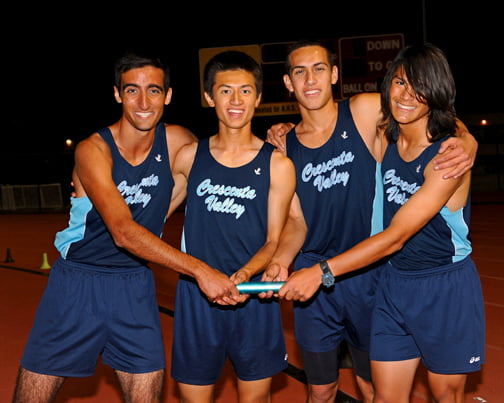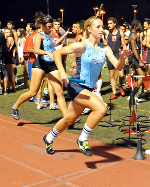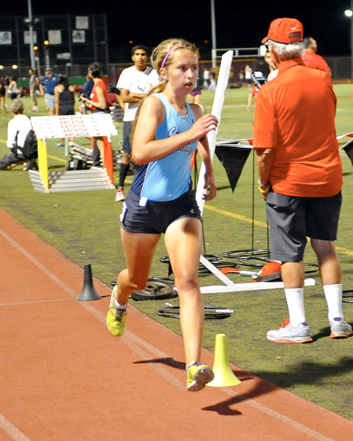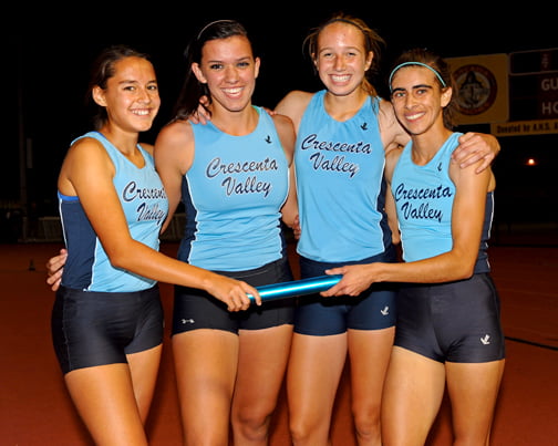 CV upset Arcadia in the girls 4×400 relay, winning the event in record time of (3:57.10) with the team of team Melnyk, Walker, Carrillo and Courtney Iannello while Arcadia placed second (4:04.15) and Burbank took third (4:15.42).
