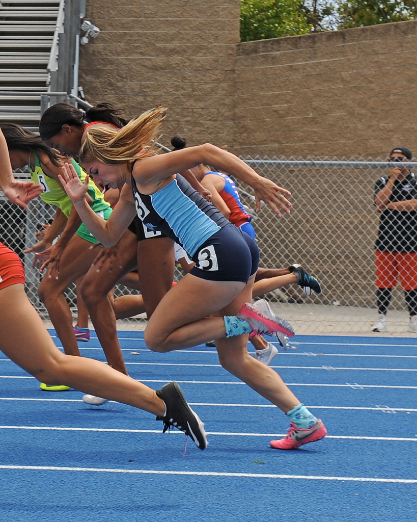 Clair Schlueter out of the blcoks of her 100m race