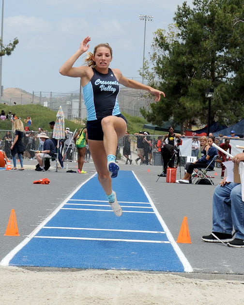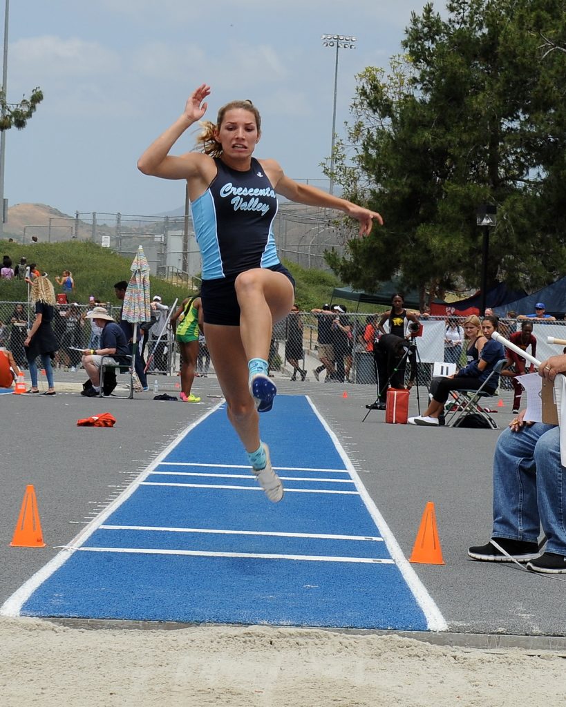 Clair Schlueter long jumping at the CIF Prelims