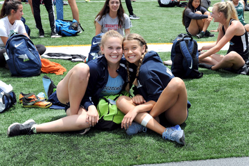 Claire Codding and Eileen Walker as they wait to high jump