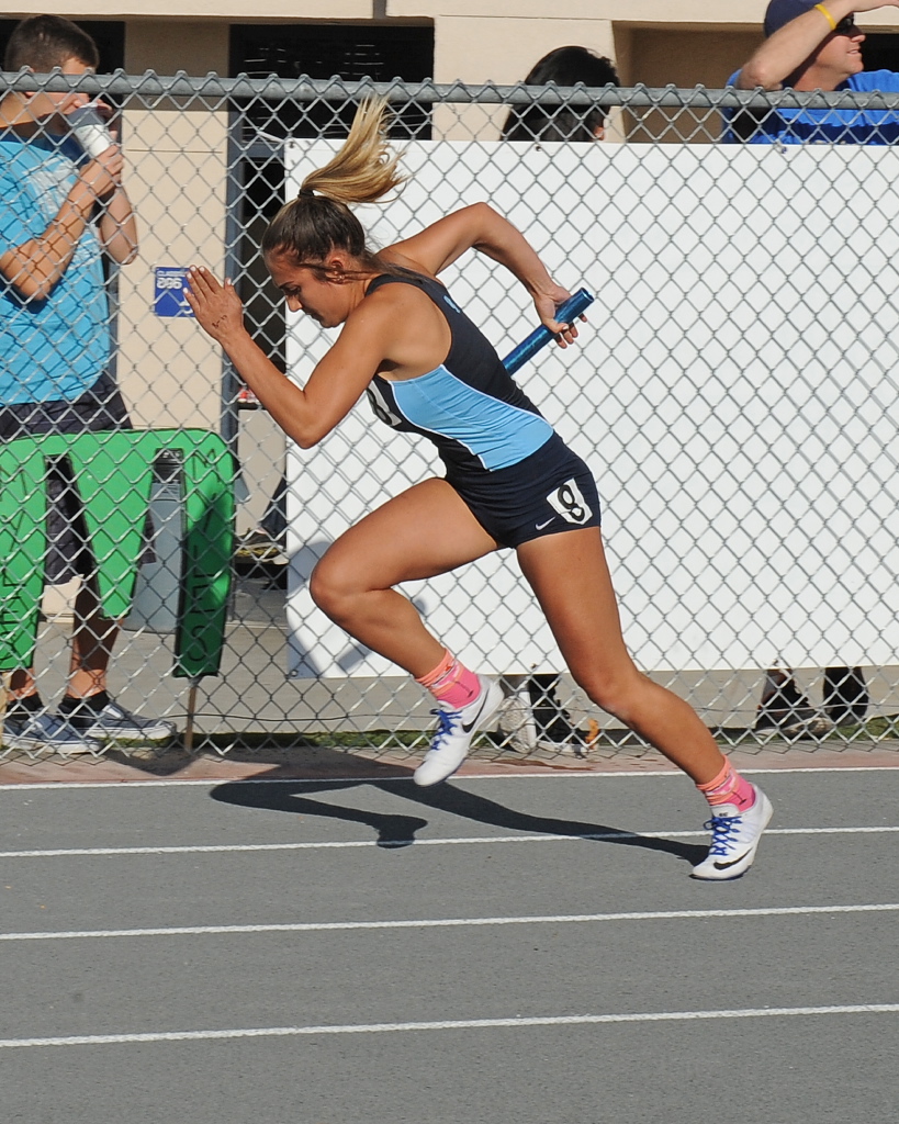 The girls 400 4 x 100 relay beat the school record by 02 Old record 49 66 Team comprised of Brianna Domingo, Jennifer Saengsri, Jessie Shelton and Clair Schlueter