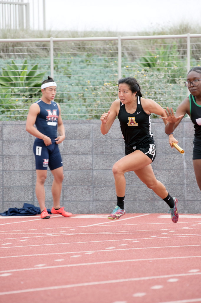 Arcadia qualified its girls’ 4x 100 relay team for the Masters Meet, which took second place running 47:46. Long jumper Stephanie Yen, who won with a jump of 18-04.50, will also be moving on to the Masters Meet. The girls’ 4×400 relay ran 3:56.43 to place ninth.