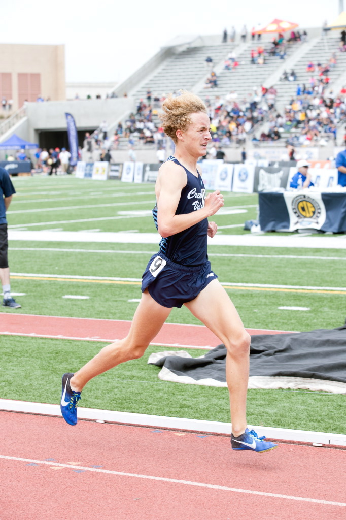 FitzGerald shaved four seconds off his last running of the 1600m at the CIF prelims (4:18.75) finishing 4:14.46, just steps behind Vista Murrieta’s Edgard Villa who captured second in a time of 4:14.30.