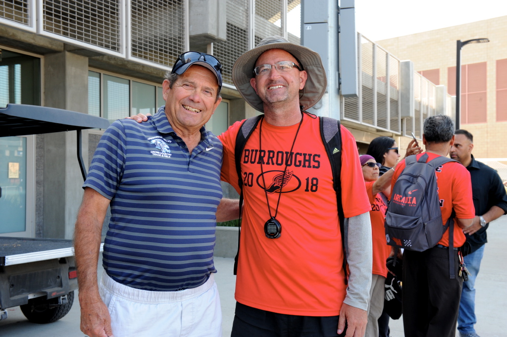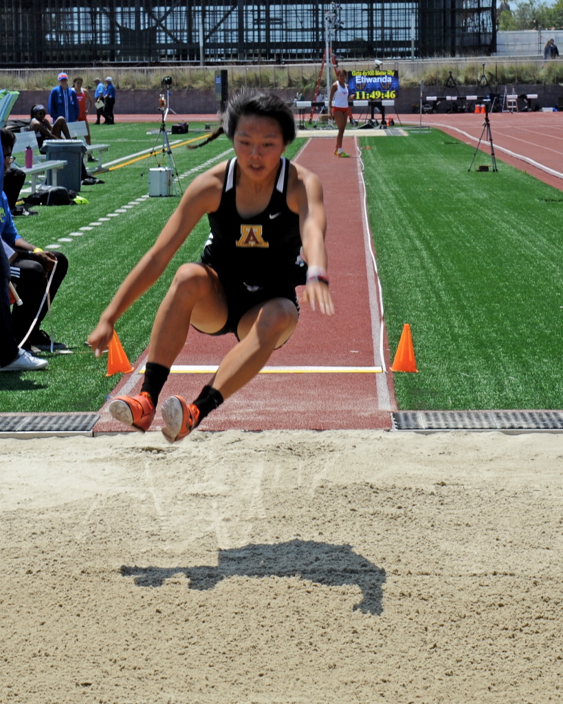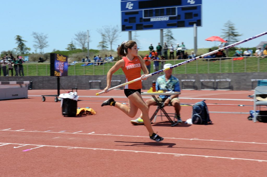 Also making the marks to advance to State was Burroughs’ Jagdeep Chahal who won in a PR time of 4:11.09 in the 1600m. He also qualified for third place in the 3200m running an impressive time of 9:04.83. Teammate Elizabeth Switzer qualified in the pole vault with vault of 11-11. Arcadia girls Caitlin Morris, Lauren Buehner, Jillian Taylor and Stephanie Yen qualified for State in the 4×100 relay taking fourth place at the Masters with a time of 47.28. Yen placed sixth jumping 18-03.25 and will attend the State meet as well.