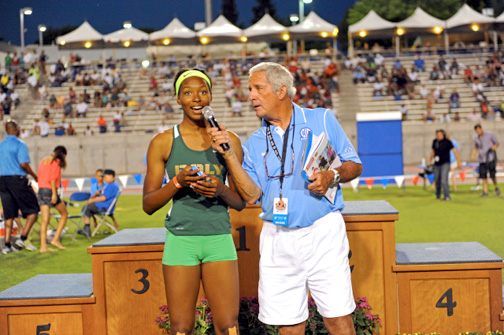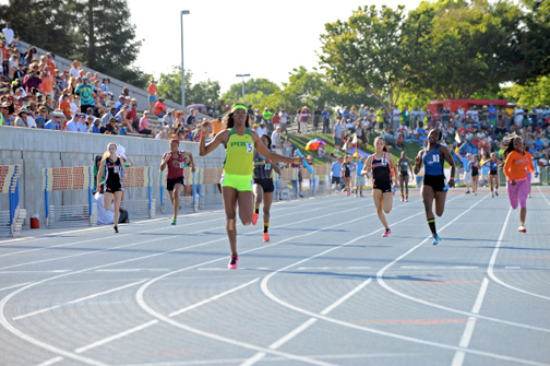 An elite track finalist, Washington concluded her high school career by winning a total of eight gold medals, taking the prize all three years in the 100m and 200m. Her teammates, continued to blow out the competition in many of the other events. Kaelin Roberts won the 400m dash with a time of 52.52. The team of Roberts, Wright, Hollie Harris and Ebony Crear won the 4 x 400m relay (3:38.05). Concluding with 70 points was the Long Beach Poly girls who nabbed the winning trophy in the girls division for the 14th time in history. Piedmont Hill scored 29 point taking second and Dos Pueblos placed third with 26 points.